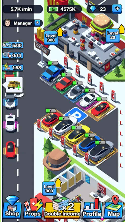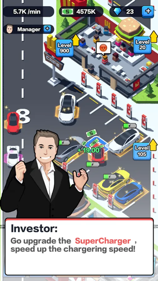 Manage wisely the food area, and shopping mall to earn money. Expand the Supercharger Station to get the most amazing facilities.