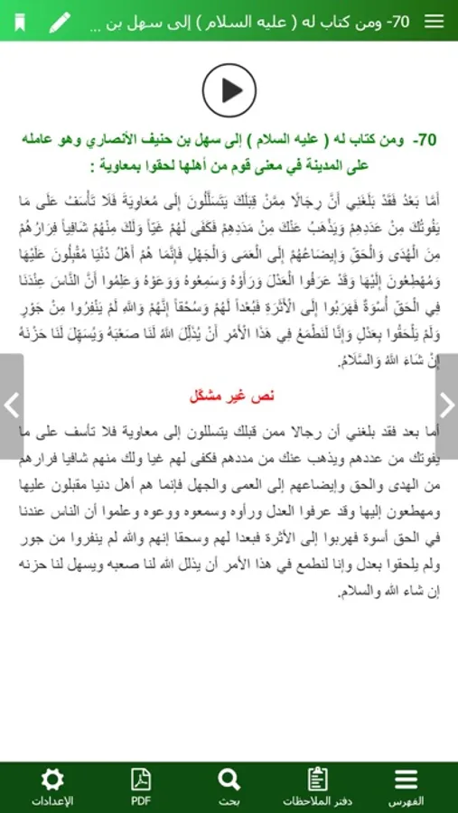 لا تحتاج للإتصال بالنت للقراءة, فقط للاستماع, ملفات صوتية صغيرة وواضحة