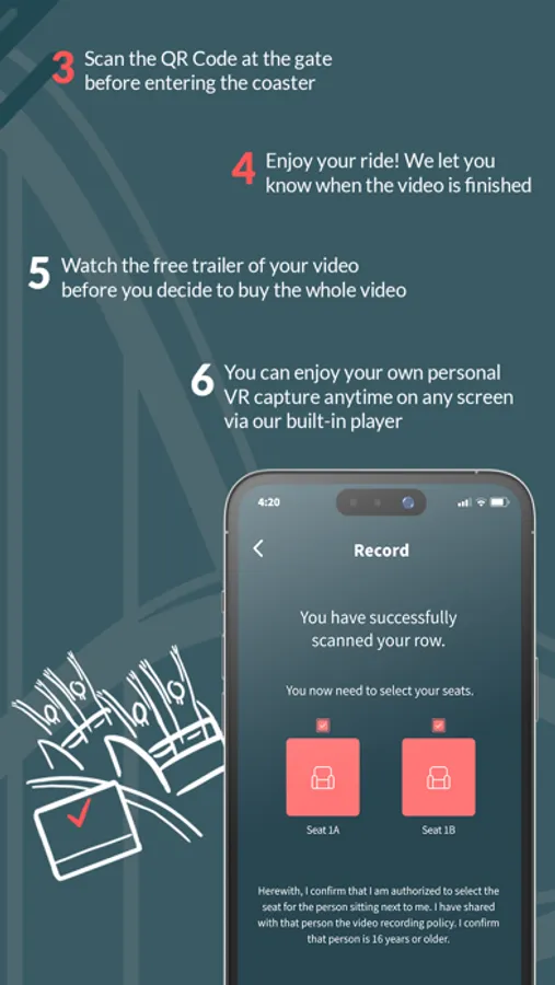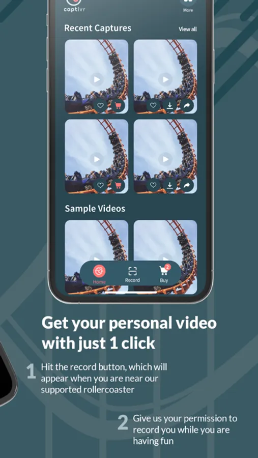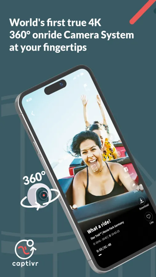 Our VR Capture App let´s you get your own cool 360 degree recording of your full ride on your favourite coaster. Give us your allowance within the app to produce the recording for you. Scan the QR-code of your seat so that we know, which camera will record you. Enjoy the ride. Shortly after you have left the coaster, we will send your personal VR Capture to your iPhone. Show your personal VR Capture to your friends on Facebook, Twitter and other social media by sharing it.With an Apple TV you can watch your personal VR Capture also with your people in the living room or in the office.