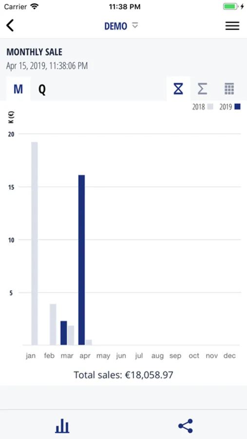 The Sales module makes it possible to view the sales information of a given company in graphic or table format, organized by timeframe, region, client or sales person. Within the timeframe analysis, the data can be visualized per day, week, month, and quarter or with accumulated values since the beginning of the year, always with a comparison to the same period of the previous year.