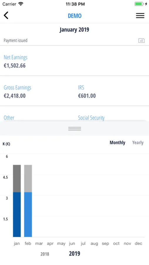 The Human Resources module allows you to, among other features, view and print payslips and Annual Income Tax Return reports, as well as access to your processing status with values, deductions, payment methods, etc. You can easily access information about your income history or download / e-mail the detailed payslip in pdf format. Therefore, you will have access to your income data, anywhere and safely.