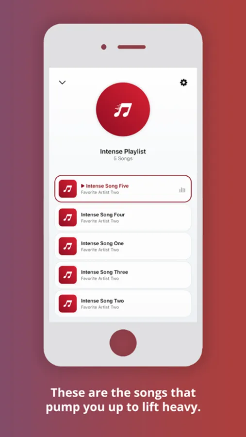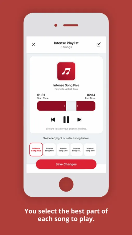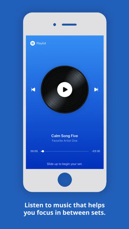 We all have our favorite part of a song and often as we prepare to lift weights then we are having to look around for it just before you begin the set. This takes away time and concentration from your workout. But with IntenSety you can do it by simply sliding the screen up to play your intense songs and then sliding down to back to your regular songs.