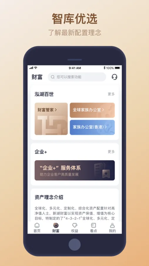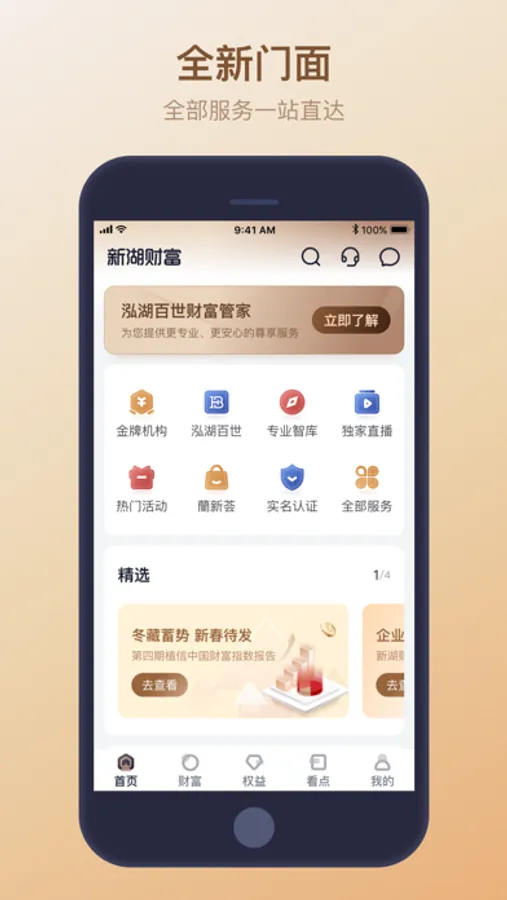 新湖财富App是由新湖财富投资管理有限公司全力打造,坚守“以客户为导向”的服务理念,为高净值客户提供多元化财富管理及全球化资产配置的综合专业金融服务。 通过快速发展,新湖财富建立了科学严谨的业务架构,以高端财富管理、高端健康管理双轮驱动,在合规展业前提下,根据客户个性化需求,精选国内外优质产品,积极参与产品结构设计,凭借独立、客观、公正的视角,全面、专业、贴心的服务,为高净值客户进行全球资产配置,赢得了客户广泛信赖。 依据新时代行业发展需要,新湖财富开启第二个五年战略规划,在“风控合规”、“客户需求”、“资产配置”三驾马车拉动下,迅速转型升级,加快国际化进程,打造多维度个性化全权委托投资服务和全球化家族财富管理综合服务体系。借助国际化金融视野,新湖财富将全面提升业务品质,帮助高净值人群实现资产的稳健增长与家族财富的永续传承。