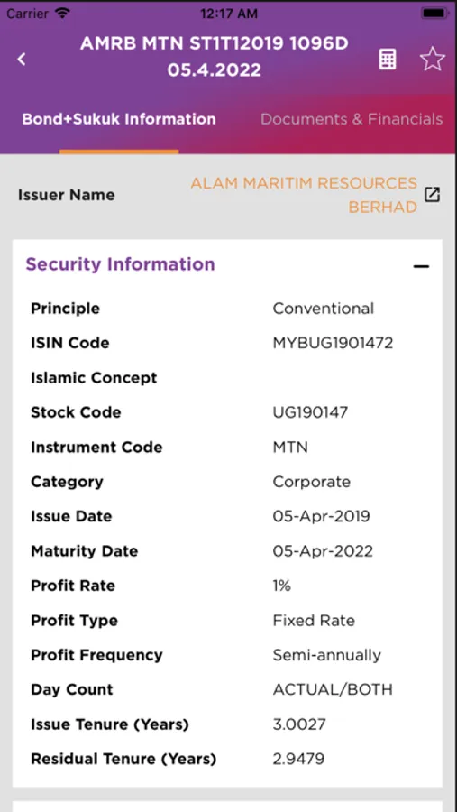 • Favourite – allows easy access to monitor and receive notification on your chosen favourite Malaysia bond and sukuk