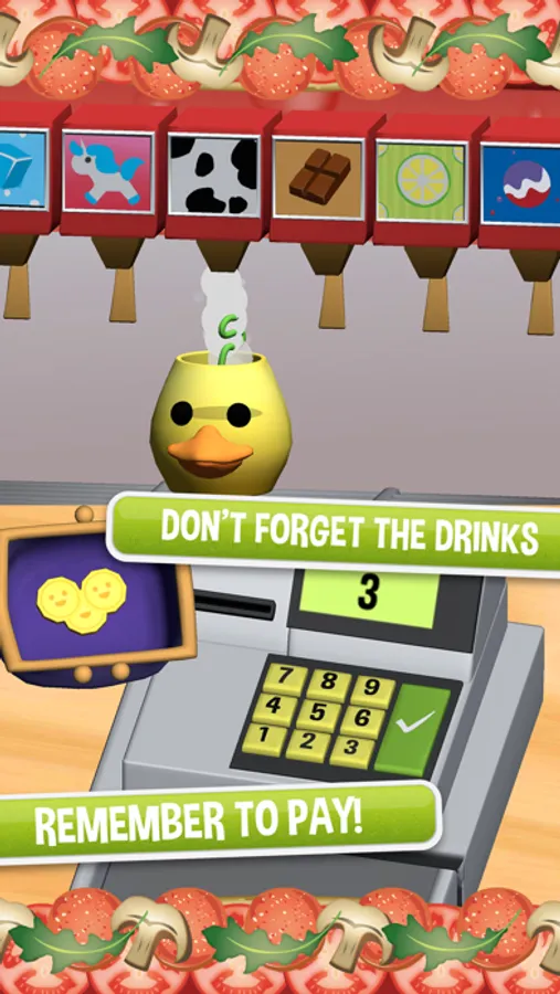 Fill the Soda cup with weird, wacky flavors. For Dessert, there's the amazing Ice Cream station with over 30 different flavors to choose from. Keep yourself busy making your dream Pizza, and when you're done, eat it all, slice by slice!