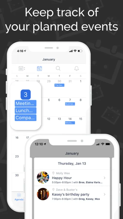 When it comes to planner apps, they usually don’t have the social capabilities that Genda does. We differ from others by being a cross between calendar and messaging. What does that mean? We’re glad you asked! Genda provides unique capabilities for any event. By syncing your phone contacts, you eliminate the back and forth that comes from scheduling through email. You don’t have to remember emails or usernames or deal with logging in and out and remember additional passwords. With your phone contacts synced, you can easily plan, organize, and schedule your meetings/events together in one app. We help you share events with all your team members, family, or friends through your phone. Now, they will fall into your calendar contacts making all future events a breeze. To put it shortly, we make it simple to gather instead of stressful.