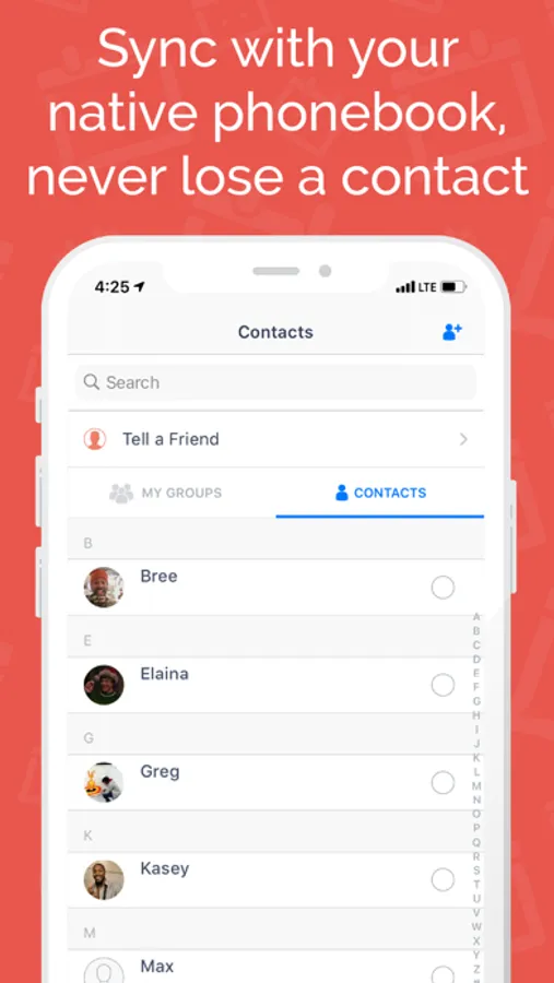 Invite people from your phonebook contacts (co-workers, friends, and family)