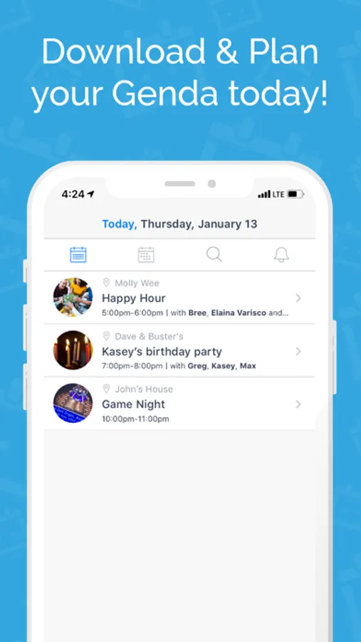 Introducing Genda, the planner/organizer you’ve been waiting for! Whether you’re planning a birthday party or trying to set up a department meeting, Genda is the calendar app you’re going to love.