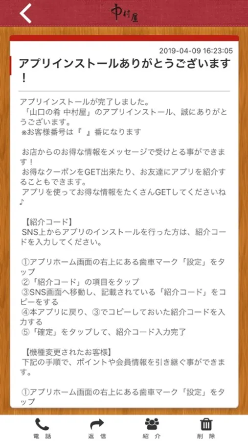中村屋のアプリをSNSを通じてお友達に紹介する事ができます。