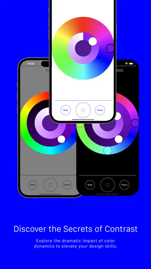 Think of ChromatiQ's revamped color wheel as both your blank canvas and your compass, leading your creativity while deepening your understanding of color theory's core principles. This is not merely an aesthetically pleasing color harmony selector - it's a voyage into the vast universe of color, demystifying the enchanting interplay of contrast and harmony.