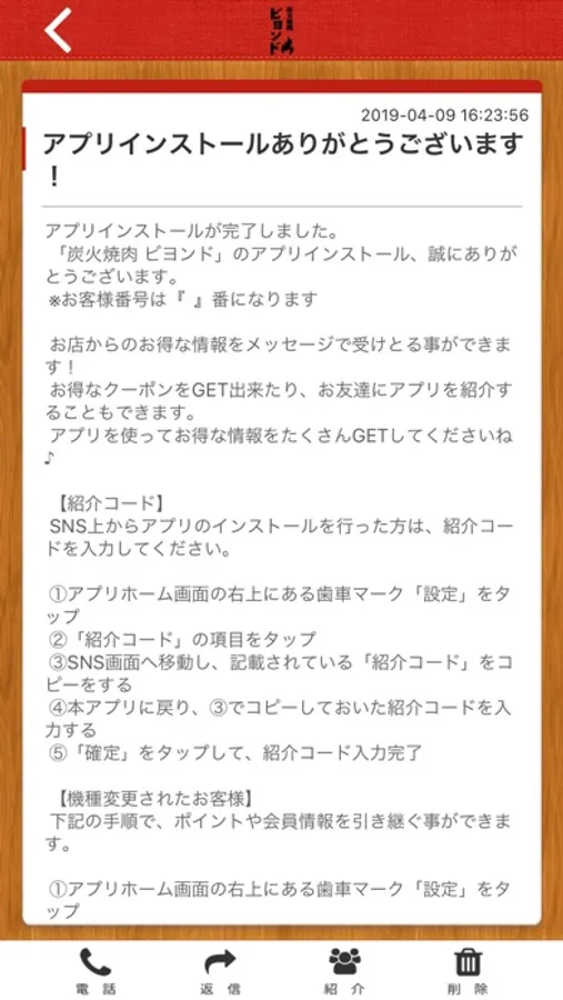 焼肉ビヨンドのアプリをSNSを通じてお友達に紹介する事ができます。