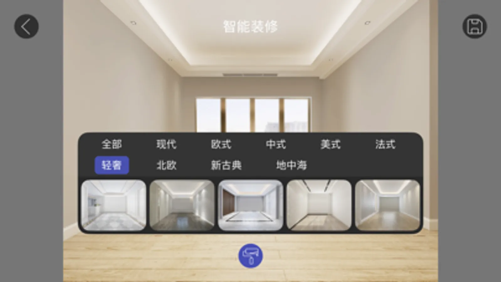 通过智能空间识别技术,实现毛坯房一键装修,各种风格、户型在爱智图的装修库中应有尽有