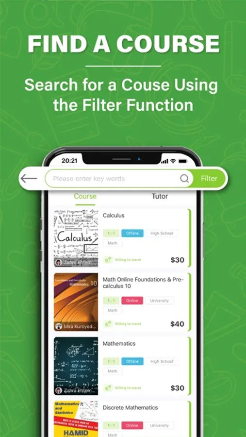 • Search for a tutor for a wide range of subjects for all levels from K-12, University and Adult Education