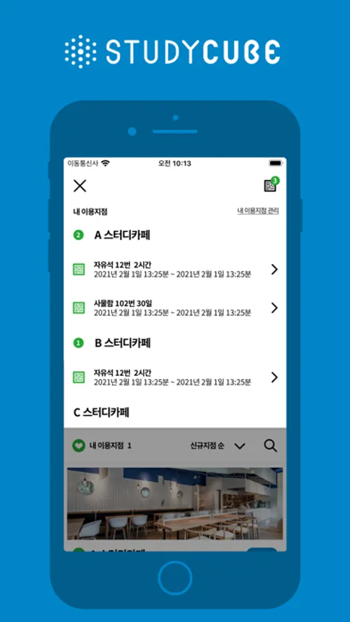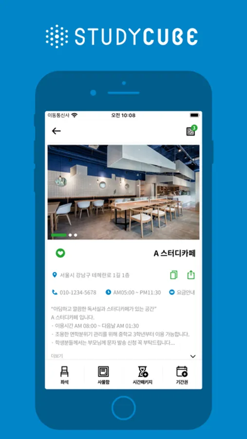스터디카페와 프리미엄독서실을 이용할 수 있습니다.