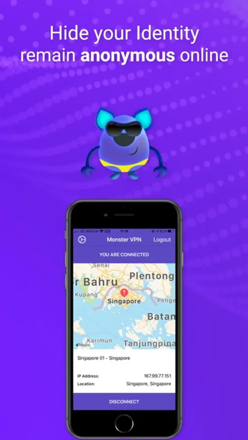 * Monster VPN will protect your passwords and your personal data or online information from hackers when you’re connected to a public Wi-Fi Hotspot, so you can enjoy maximum security and privacy.