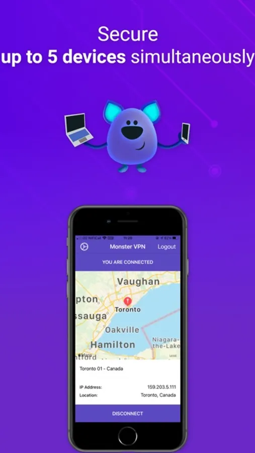 MonsterVPN protects your online activity from cyber threats with a super fast, encrypted and anonymous connection. It’s a fantastic choice if you are looking for a secure VPN app to enjoy unlimited private browsing.