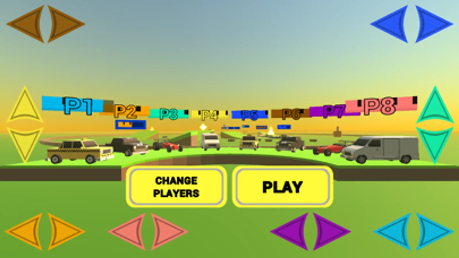 Up to 8 players can take part in this local multiplayer game. Select a vehicle that fits your style. Do you want to be fast an collect powerful power-ups to destroy your opponents or would you rather take a truck and ram every car that comes close to you?