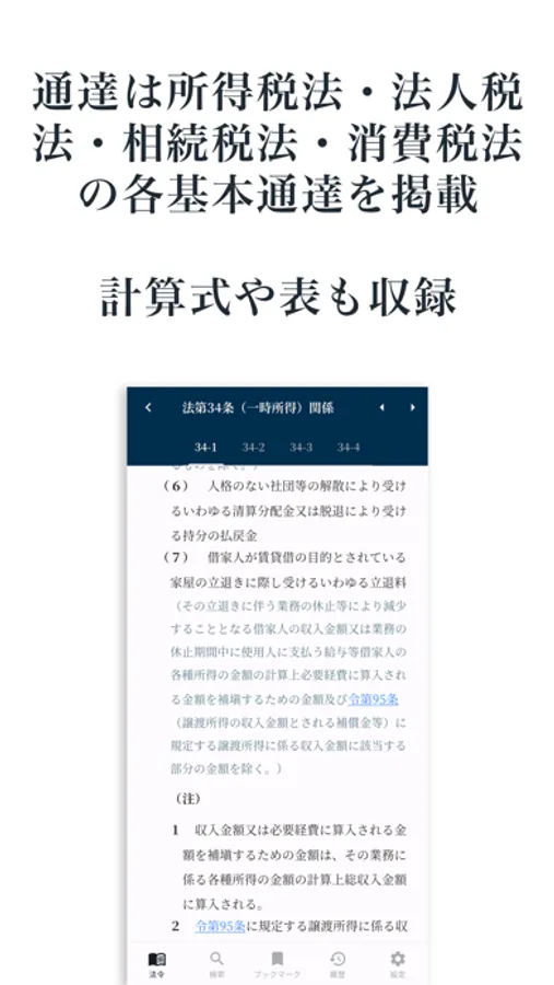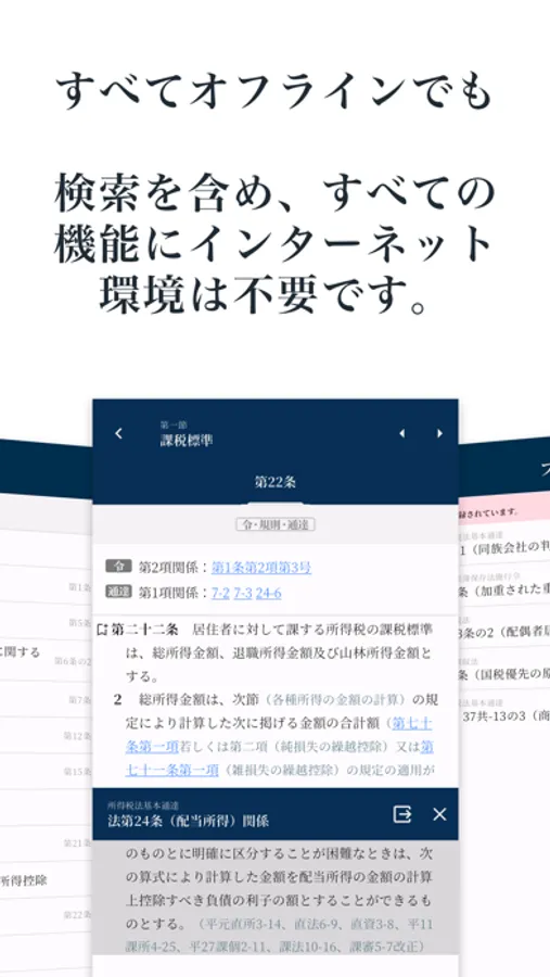 :本当に公式の情報と相違がないかを確認できるようにするために、条文や通達から e-Gov 法令検索や国税庁の該当ページに簡単に遷移できるようにします。