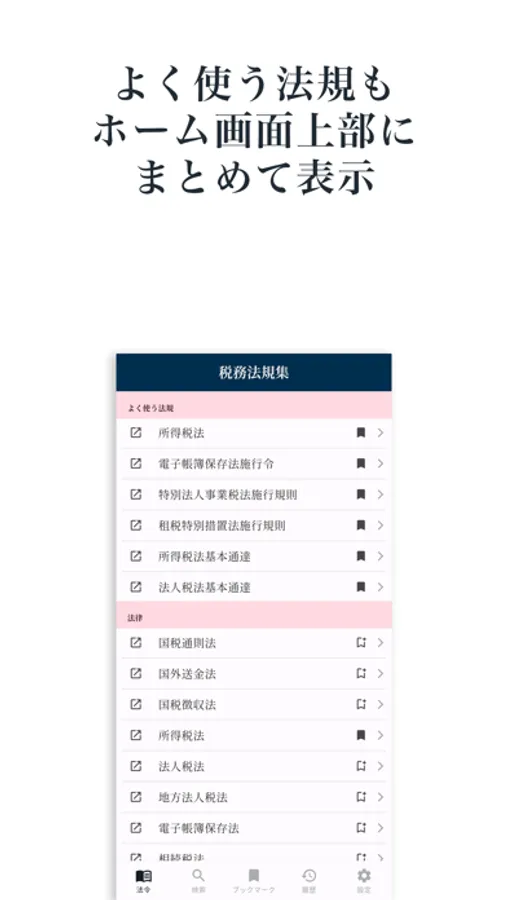 紙の六法では紙面スペースの都合上、一部の条文が省略されることが少なくありません。税務法規集は長大な租税特別措置法を含め、全条文を省略することなくすべて収録しています。データはすべて法令データ提供システムの最新版が収録されています。