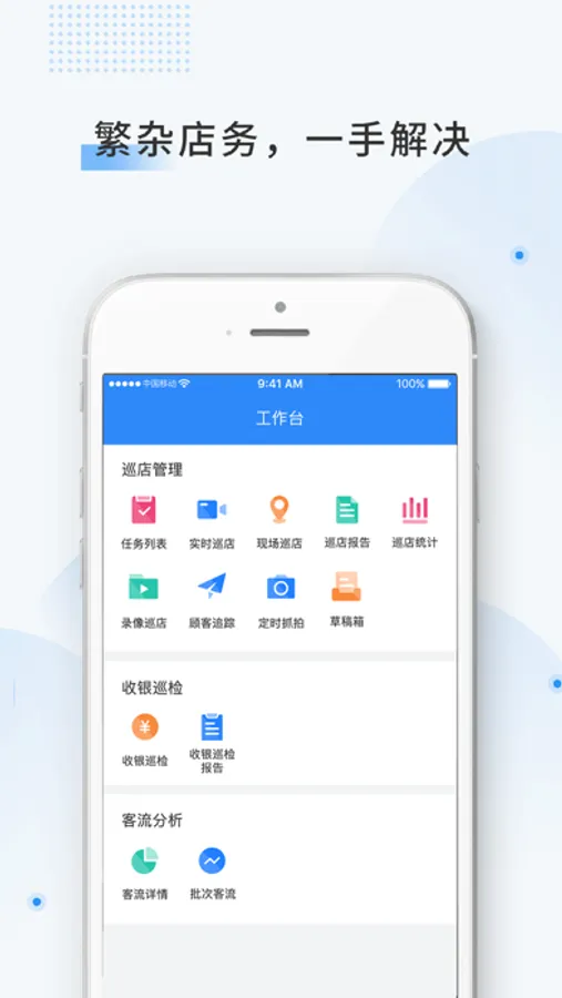 【智能巡店】通过云盯设备进行远程可视化巡店,快速定位问题并转交责任人及时整改处理。