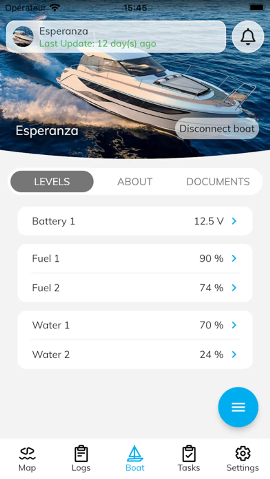- Monitor your boat's condition: check the status of your batteries, fuel, water and waste tank in a flash of an eye.