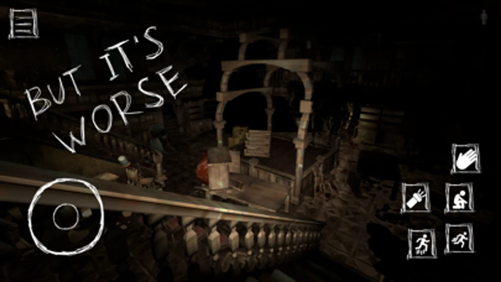 First, you have to find the main gate key in the jacksons prisons fort. The key could be anywhere in the manor. Also, you can hide behind objects, inside some furniture or under the tables. Once you obtain the key, just go for the main gate of the jacksons fort prison to unlock it and escape the mansion. Sounds simple, right? The key icon will appear on the screen, once you collected the key. Other state icons will tell you what you are doing, if staying idle, walking, running, etc. Put close attention when the icon turns into an eye with a crossed line. It means you are hidden and The Ayuwoki will not be able to catch you. Do your best and escape the jacksons mansion in our horror escapade simulator. Once you escape the fort prison, you will be able to forget the ayuwoki hee hee for a long time.