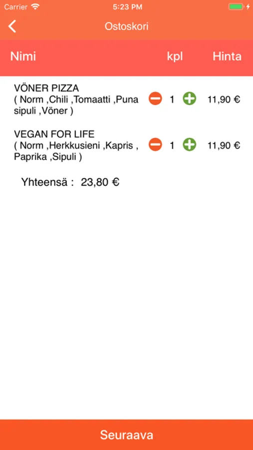 Tarjontaamme kuuluvat pizzat, kebabit, kanakebabit, salaatit, vönerit ja vegaaninen pizzat. Voit maksaa myös puhelimella..