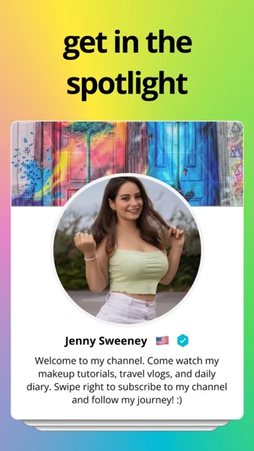 ● Discover new creator channels by swiping through creator cards. Swipe right to subscribe to a channel, or swipe left for the next creator.