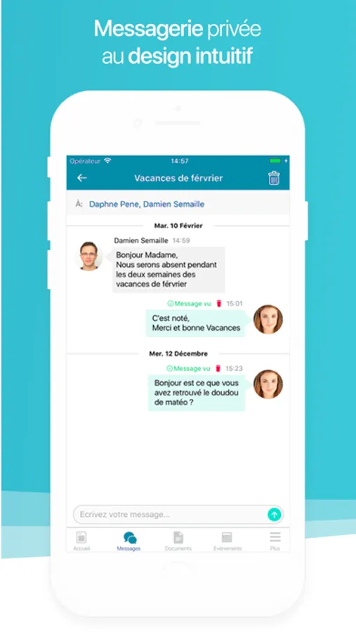 - Envoyer des messages aux professionnels de la crèche via une messagerie dédiée