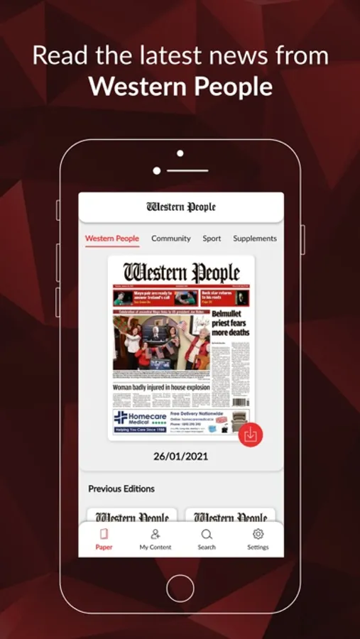 The Western People app is free to download, but to read the paper and supplements you will need to purchase a subscription via iTunes. The packages available are: