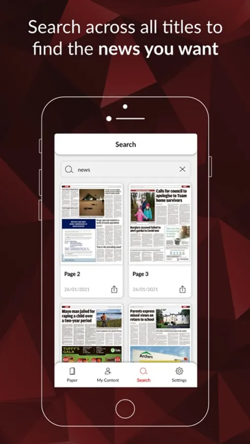 • An exact replica copy of the print newspaper available from 2am on Tuesday mornings