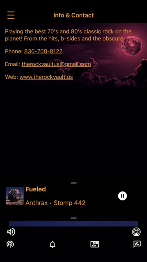 The Rock Vault plays the best 70's and 80's classic rock on the planet. From the hits, b-sides and the obscure. Bringing back classic rock to the internet and to your ears. Artists like Legs Diamond, Judas Priest, Triumph, UFO, Moxy, Uriah Heep, Winterkat, Jumbo,Saxon, BTO, Montrose, Molly Hatchet, Riot and much much more. Playing a vast amount of Texas rock and roll as well.