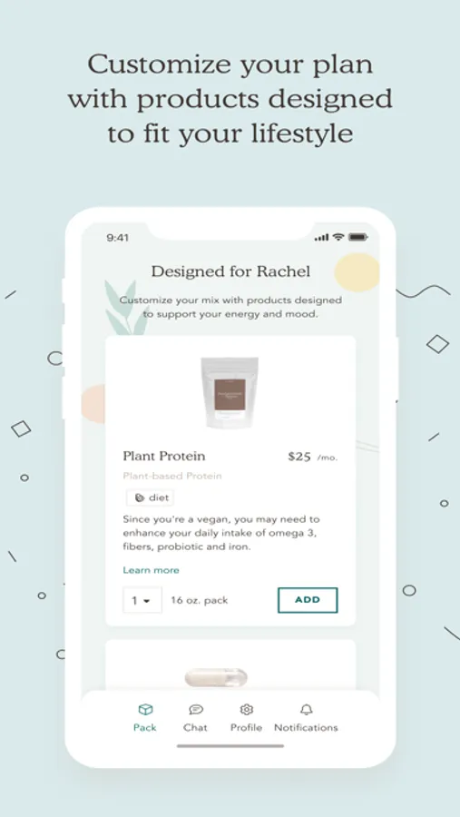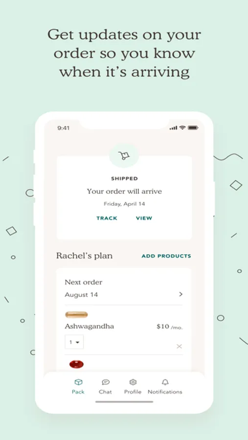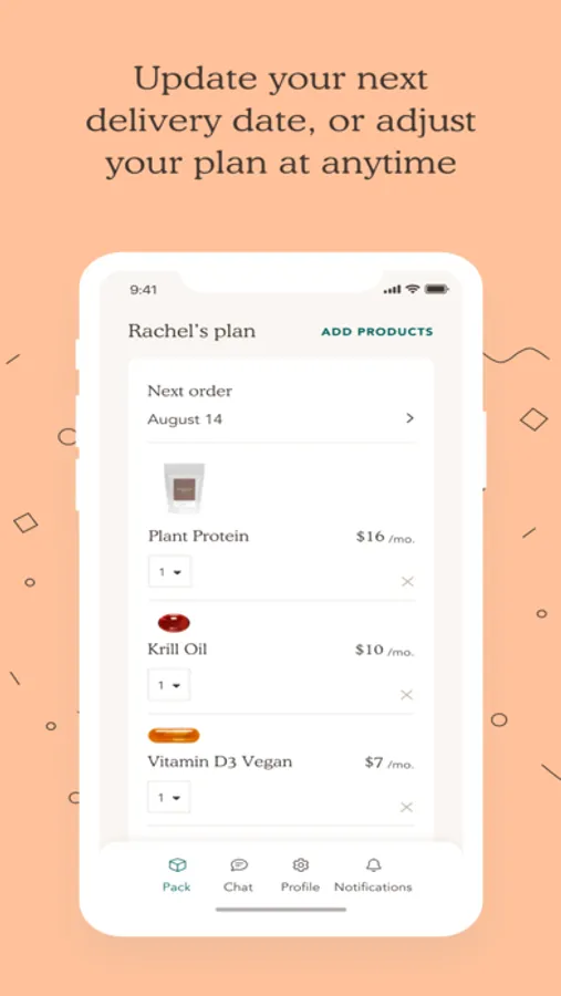 Our app is designed to help you stick with your vitamin plan: it includes daily reminders, free guidance with your Nutrition Expert to stay on track, shipping alerts, and much more.