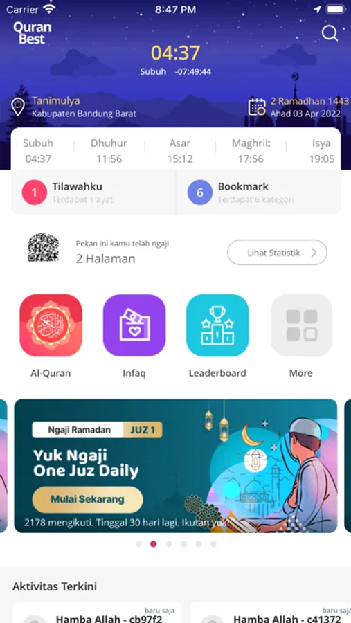 Inovasi Terbaru, dilengkapi dengan deteksi jumlah tilawah Al Quran dan target harian.