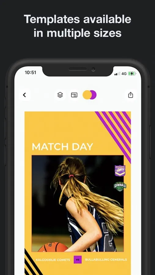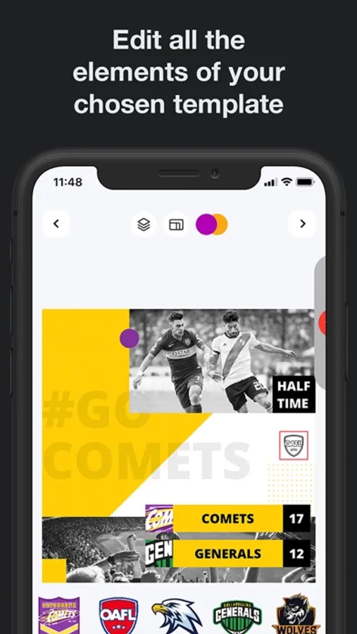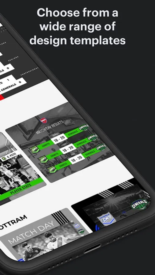* Export customised sports graphics ready to be published on Facebook, Instagram, Twitter or any other social media platform.
