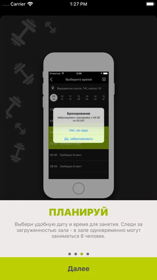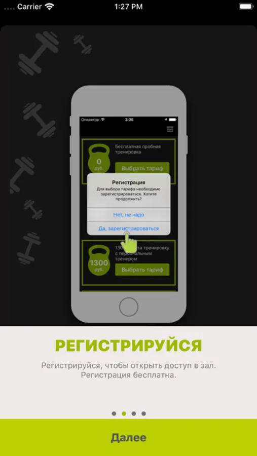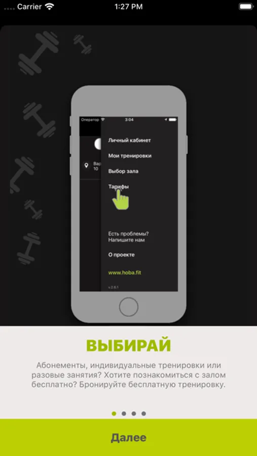 Приложение для бронирования тренировок и доступа в зал. Выбери тариф и сделай свой фитнес максимально удобным. Первая тренировка за наш счет!
