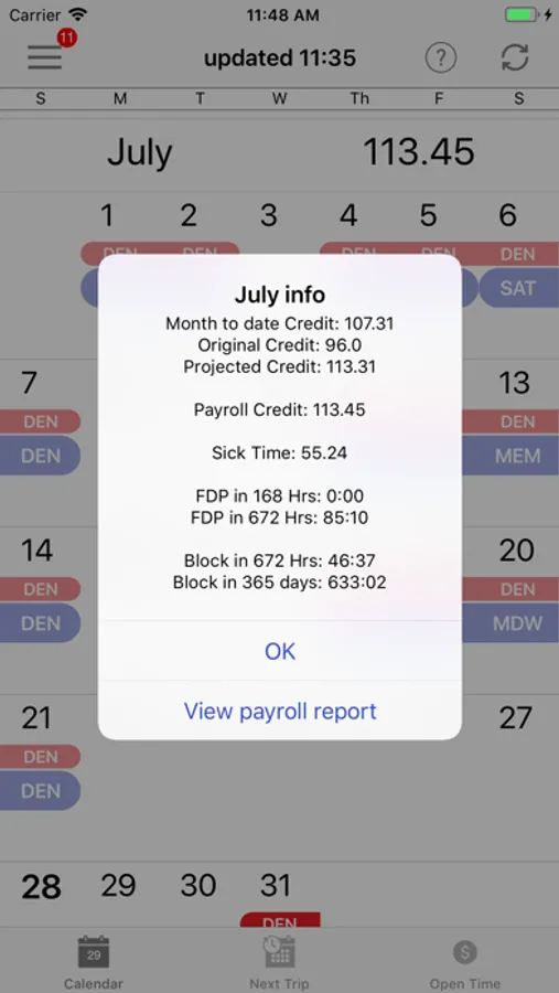 -View flying/credit summary data by tapping a month - includes a quick link to your PAYROLL REPORT