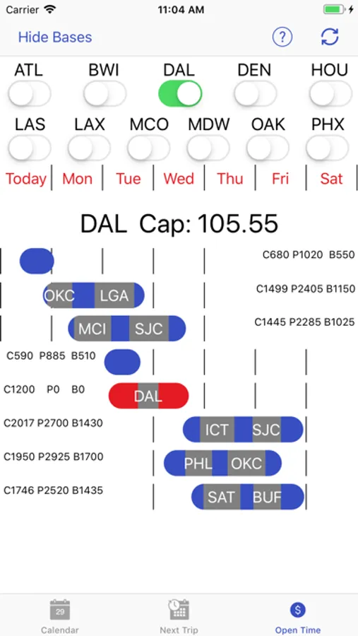 -View OPEN TIME trips graphically - fast updates, color coded with filters