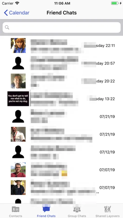 Crew Chats: A group chat for each overnight and for each flight - great for texting your crew(coffee, late, van time changes, etc.) or for planning outings on overnights