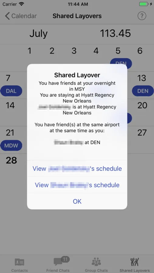 -Calendar and Notifications for shared overnights and airport layovers(when you and a friend are at an airport or overnight at the same time)