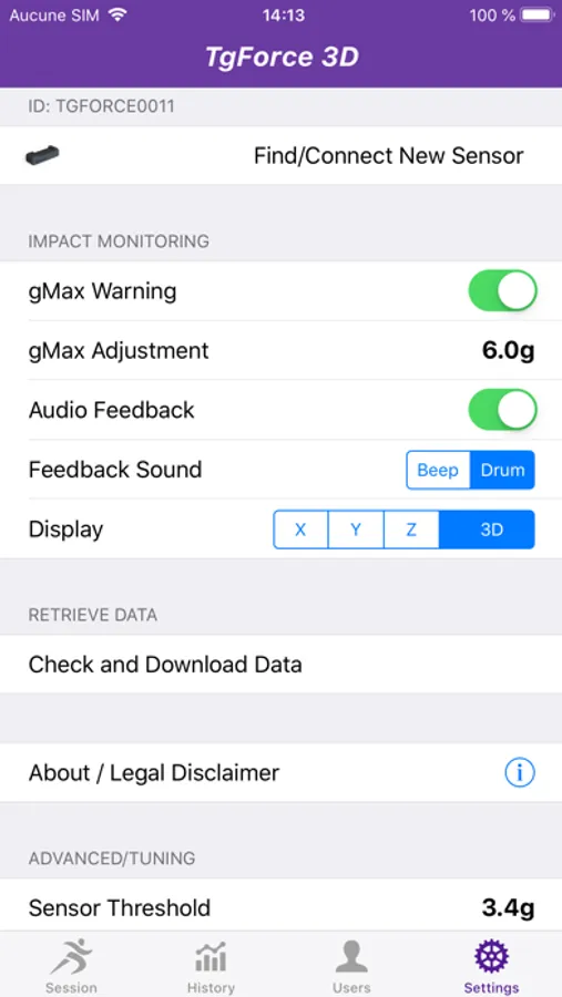 Note: To use this App, you will need a TgForce 3D impact sensor and iOS 11.0 or later.
