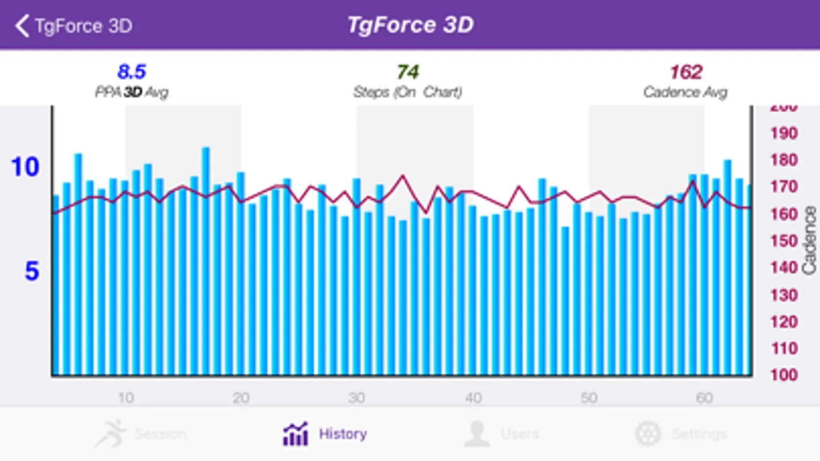 The new TgForce 3D provides real-time measurement and feedback of impact level while running. With the companion sensor attached to the tibia, the TgForce 3D App evaluates the acceleration level of all axes (X, Y, Z, and 3D Vector). It can be used for monitoring impact while running and evaluate ground reaction forces. These features are helpful for gait retraining or transitioning to a new type of shoes.