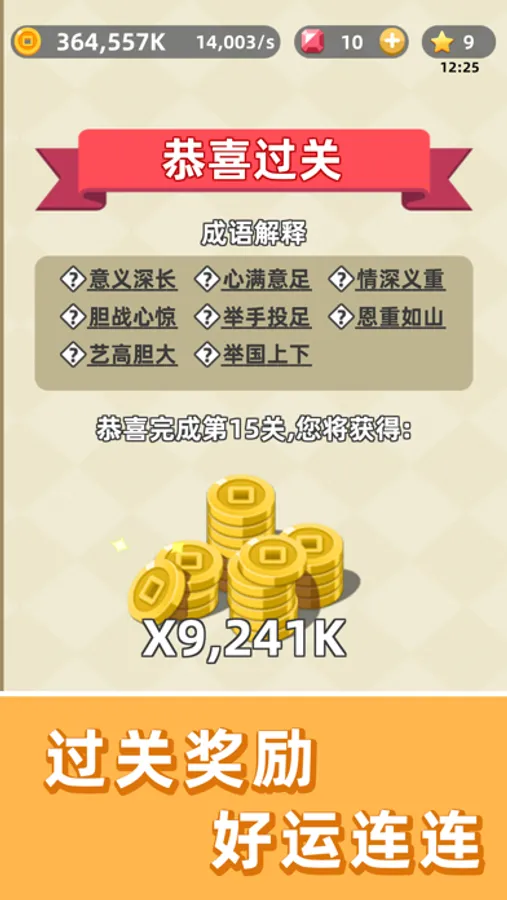 - 通关后可查看每一个成语的解释和出处,真正寓教于乐;