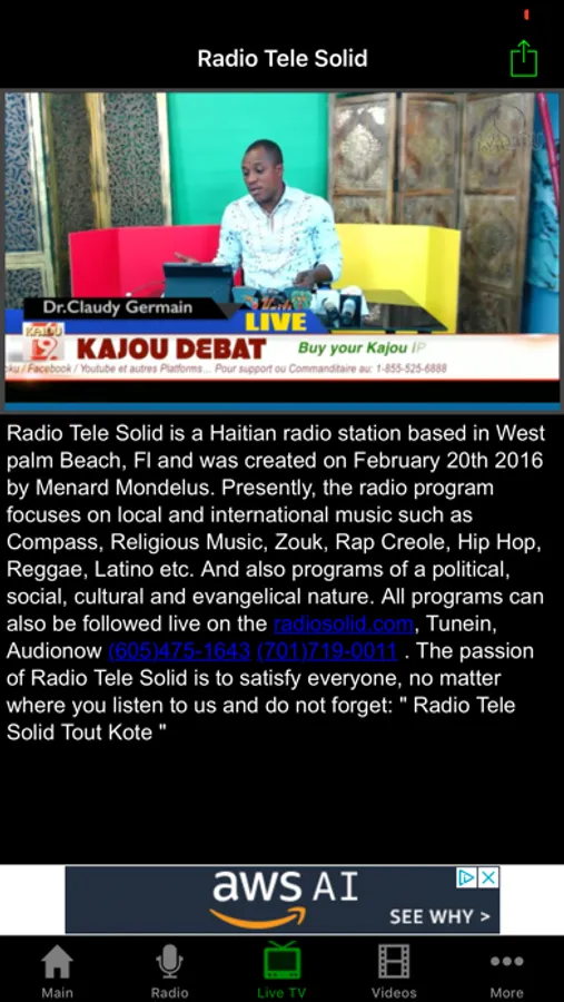 Radio Tele Solid is a Haitian Online Station that based in Lake Worth, Fl and was created on February 20th, 2016 to Presently, the radio program focuses on local and international music such as Compass, Religious Music, Zouk, Rap Creole, Hip Hop, Reggae, Latino etc. And also programs of a political, social, cultural and evangelical nature. All programs can also be followed live on the radiosolid.com, Tunein, Audionow and Zenolive websites. The passion of Radio Solid is to satisfy everyone, no matter where you listen to us and do not forget: "Solid Radio Radio Pa'w"