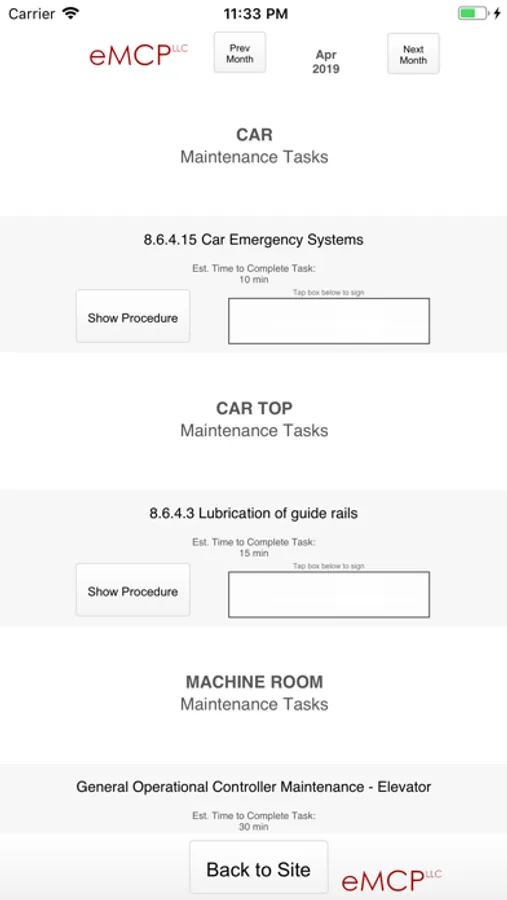 eMCP is a software solution that generates maintenance control programs for vertical transportation equipment. Simply complete a survey on the equipment and the app will generate a complete, 1-year MCP for the elevator or escalator. Additionally, eMCP can be configured to record maintenance and run completion reports to keep track of maintenance contract compliance.