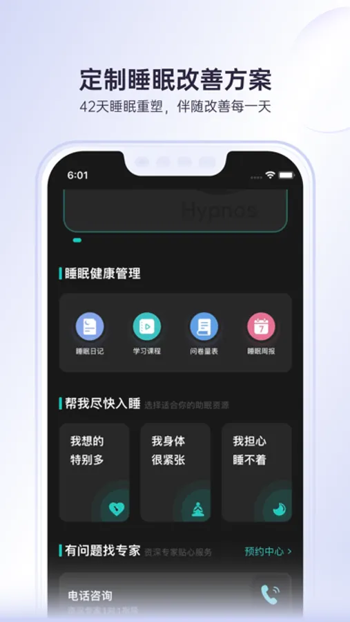 基于旗下医院睡眠医学中心,为你开发出了一套独有的智能评估体系,从根源上寻找困扰你的睡眠问题是什么,并高效定制出属于你的睡眠改善方案