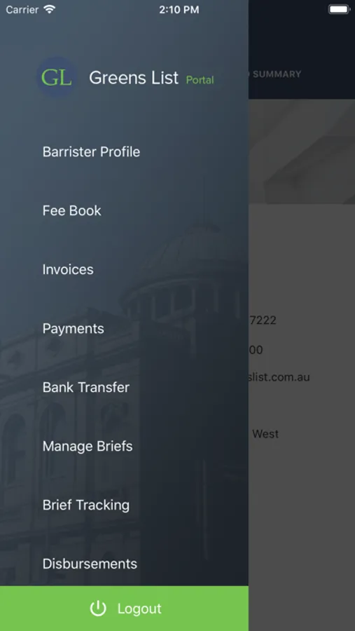 Greens List Portal is a legal practice management app designed specifically for Barristers on Greens List. It assists with all aspects of matter management, including tools for time tracking, invoicing, receipts, brief tracking, debt recovery, and business development reporting and dashboards.