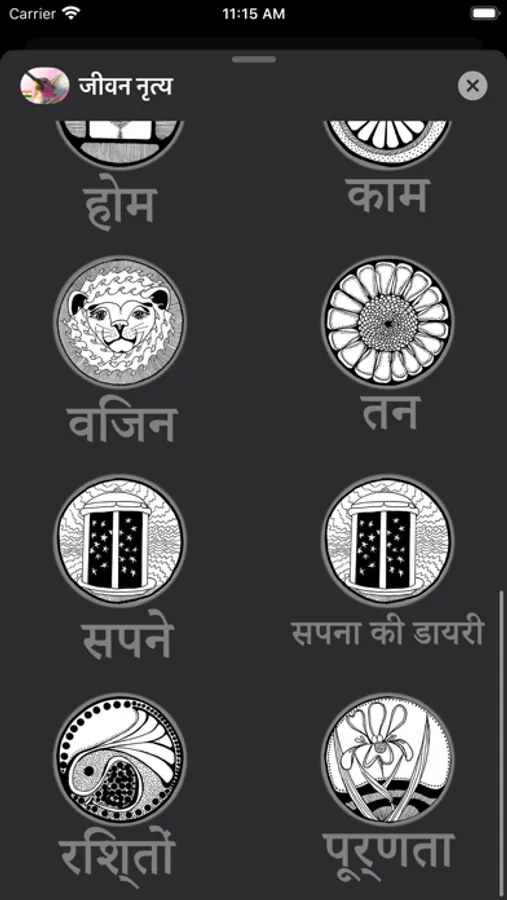 (Hindi Version) These images represent the arenas of your life that you discover in LifeDancing, a method for self-directed well-being.