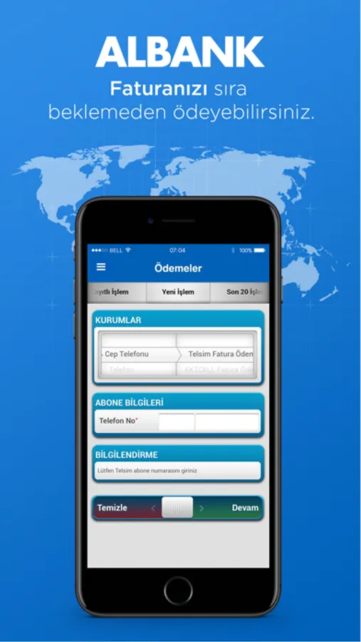 ALBANK Mobil’in kolay kullanımı ile hesap bilgilerinizi görüntüleyebilir, para transferlerinizi gerçekleştirebilir, döviz işlemlerinizi yapabilir ya da sıra beklemeden faturalarınızı ödeyebilirsiniz.