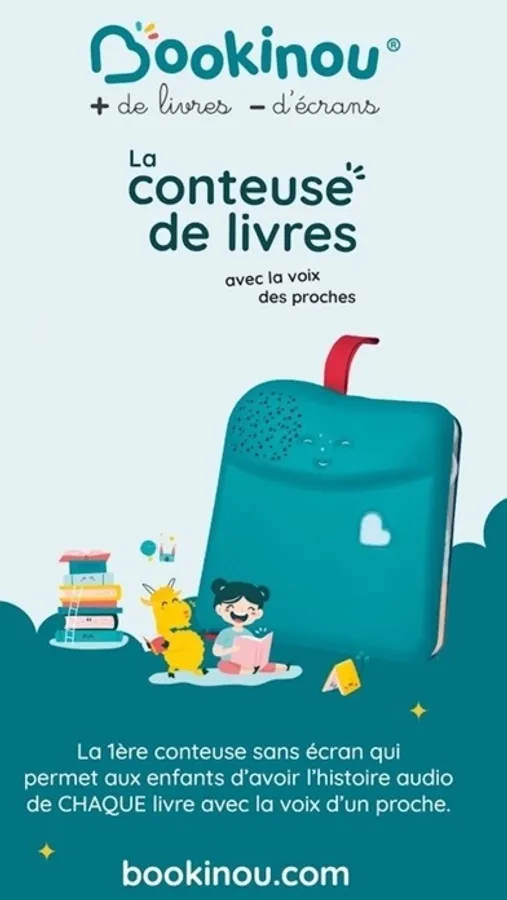 The mobile application enables you and all the family to record and customized the story of any Book. Then, your children can be easily listen to those stories on Bookinou which is a screenless audio player designed for them.